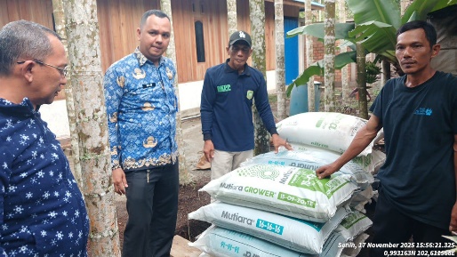 Dalam mewujudkan tujuan kelompok tani Harapan baru, Dinas Ketahanan Pangan dan Pertanian Kabupaten Kepulauan Meranti memberi bantuan berupa handsprayer dan pupuk untuk membantu dan mendukung agar dapat terlaksana maksud dan cita-cita kelompok tani. Bantuan yang diberikan berupa 11 handsprayer, NPK Mutiara 200 kg, NPK Grower 200 kg dan TSP 200 kg yang telah disalurkan dalam kondisi cukup dan baik .