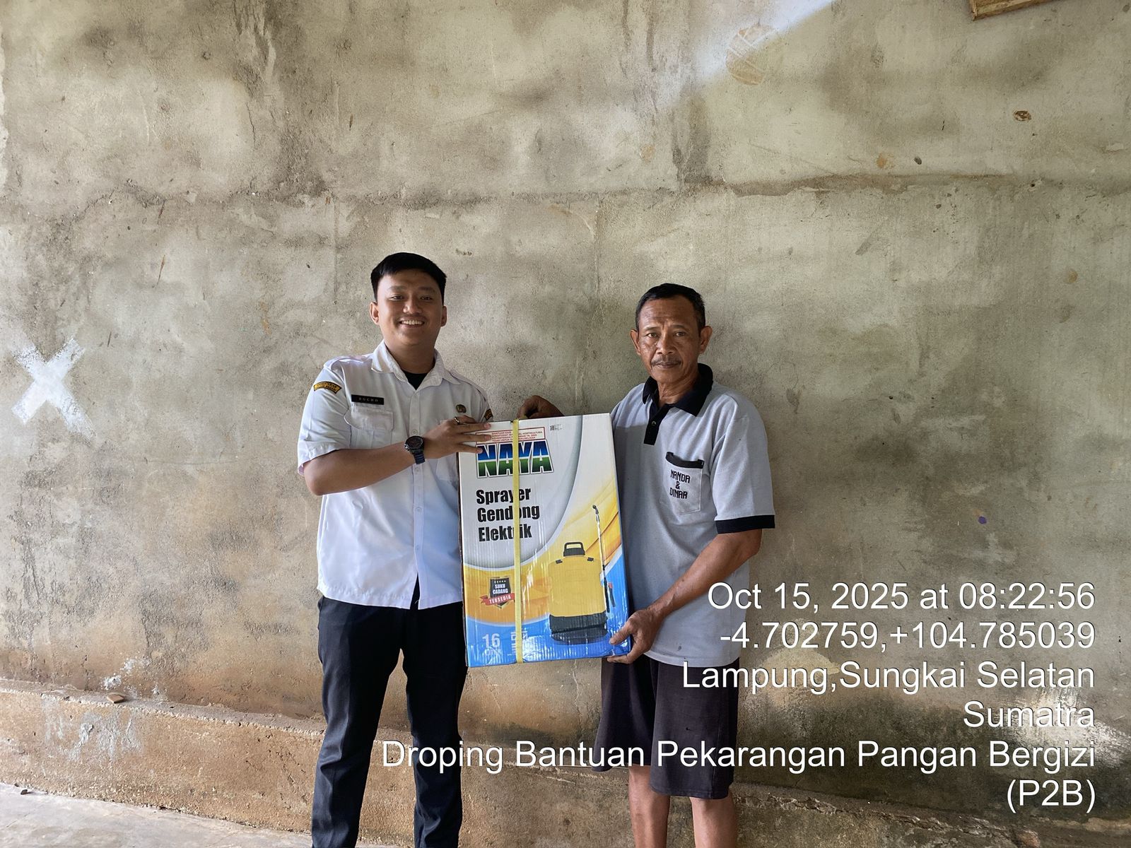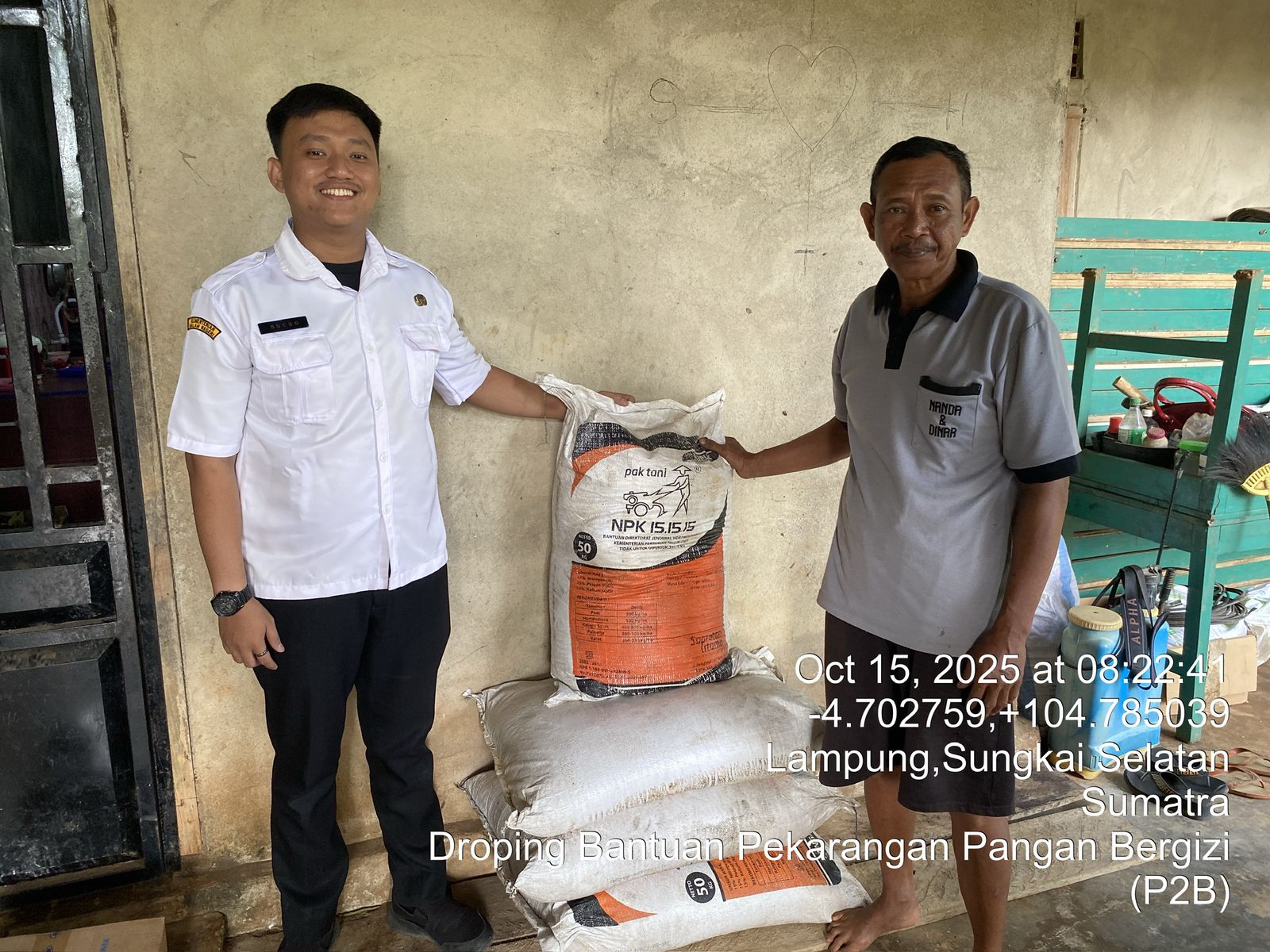 Penyuluh Pertanian Lapangan Desa Kota Agung, Kecamatan Sungkai Selatan Buchori Waya Nihan, S.P., melakukan Pendampingan Pendistribusian Bantuan Pekarangan Pangan Bergizi (P2B) di Desa Kota Agung, Kecamatan Sungkai Selatan. Pemberian Bantuan Bibit Pisang telah dilakukan sebelumnya pada hari Sabtu, 11 Oktober 2025. Bantuan yang diberikan pada hari Rabu, 15 Oktober 2025 meliputi Bantuan Pupuk KNO3, Pupuk NPK dan Handsprayer Elektrik.