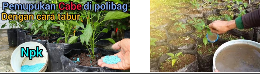Pemupukan ketika tanaman berumur 7 / 10/ 15 hari setelah tanam dan diulang setiap 7 hari sekali sampai tanaman cabai menghasilkan buah