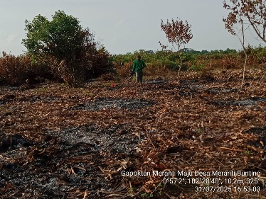Pembukaan lahan merupakan kegiatan pembersihan lahan dari vegetasi seperti pohon dan semak menjadi lahan yang siap atau akan digunakan untuk berbagai kegiatan. Bagi petani pembukaan lahan bisa digunakan untuk kegiatan pertanian. Petani yang bergabung dalam Gapoktan Meranti Maju Desa Meranti Bunting membuka kembali lahan pertanian atau lahan sawah terbengkalai.