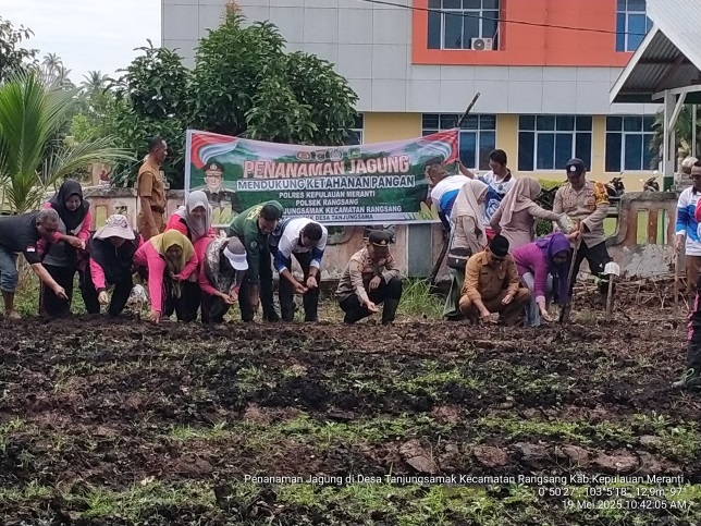 Pemerintah Desa Tanjungsamak bersama Polsek Rangsang Bapak Dominikus Turnip, S.E, Bapak Camat Rangsang H. Setu, S.H, Kepala Desa Tanjungsamak Saidi Roesman, Bapak Bhabin Kamtibmas Desa Tanjungsamak Yoki Prasetio, PPL Kecamatan Rangsang dan Ibu PKK Desa Tanjungsamak melakukan penanaman jagung pipil bersama di lahan yang luasnya ±0.5 ha dalam rangka mendukung program peningkatan ketahanan pangan nasional. Kegiatan penanaman dilakukan secara gotong royong, Ibu PKK Desa Tanjungsamak sangat antusias mengkuti kegiatan tersebut karena di yakini dapat meningkatkan Kesejahteraan Masyarakat Desa Tanjungsamak. Kepala Desa Tanjungsamak, Bapak Saidi Roesman, dalam sambutannya menyampaikan bahwa program penanaman jagung pipil ini merupakan bagian dari strategi desa dalam mendorong pemanfaatan lahan tidur serta memperkuat sektor pertanian lokal. “Kami berharap jagung pipil ini menjadi komoditas unggulan desa. Selain mudah dibudidayakan, hasilnya juga memiliki nilai ekonomi cukup tinggi,” ujarnya.