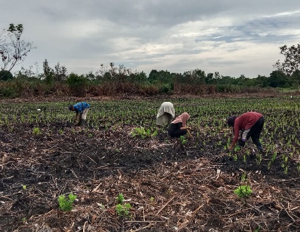 Proses penanaman melibatkan pembagian tugas yang jelas. Petani laki-laki bertugas menyiapkan lahan dan membuat lubang tanam dengan cara menunggal. Sementara Petani perempuan membantu dalam pencabutan bibit di tempat persemian dan melakukan penanaman. Target penanaman ini seluas 2,5 hektar.